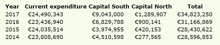 There may be a problem here in that I have a feeling that, if there is no NI Executive, spending is limited to 90% of the previous year’s figure [I am open to correction on this], which might cut the NI contribution to current spending: I presume that the RoI contribution would then be cut too, to maintain the 85:15 ratio.