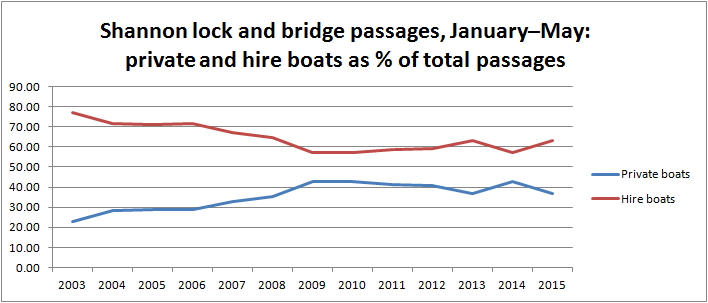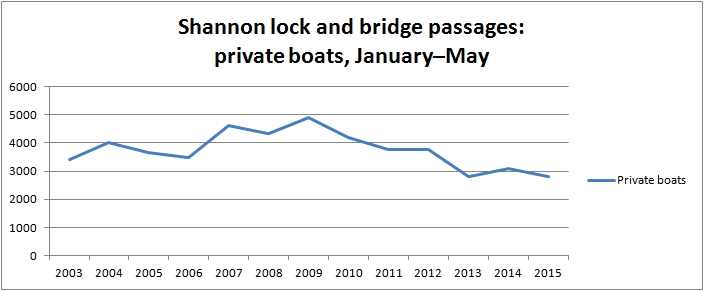 On the other hand, the figures do include the Shannon’s most significant tourism activity, the cruiser hire business. And they are our only consistent long-term indicator of usage of the inland waterways.