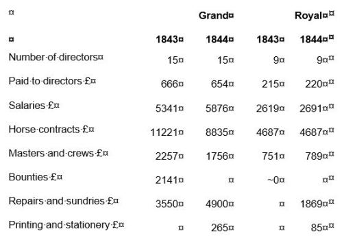 Note that salaries cost considerably more than did the boat crews and that horse contracts, for hauling the boats, were about four times the cost of masters and crew on the Grand and aboout six times that cost on the Royal.