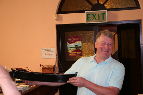 Ralph O'Callaghan shows a model of a yawl (a horse-drawn boat used to carry goods between Carrick and Clonmel)